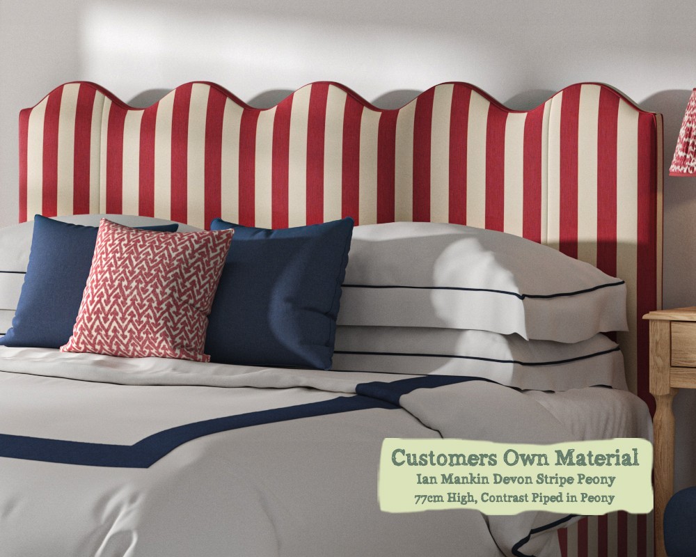 Super King Solas Headboard in Ian Mankin Devon Stripe Peony Contrast Piped Edge in Peony 77cm High