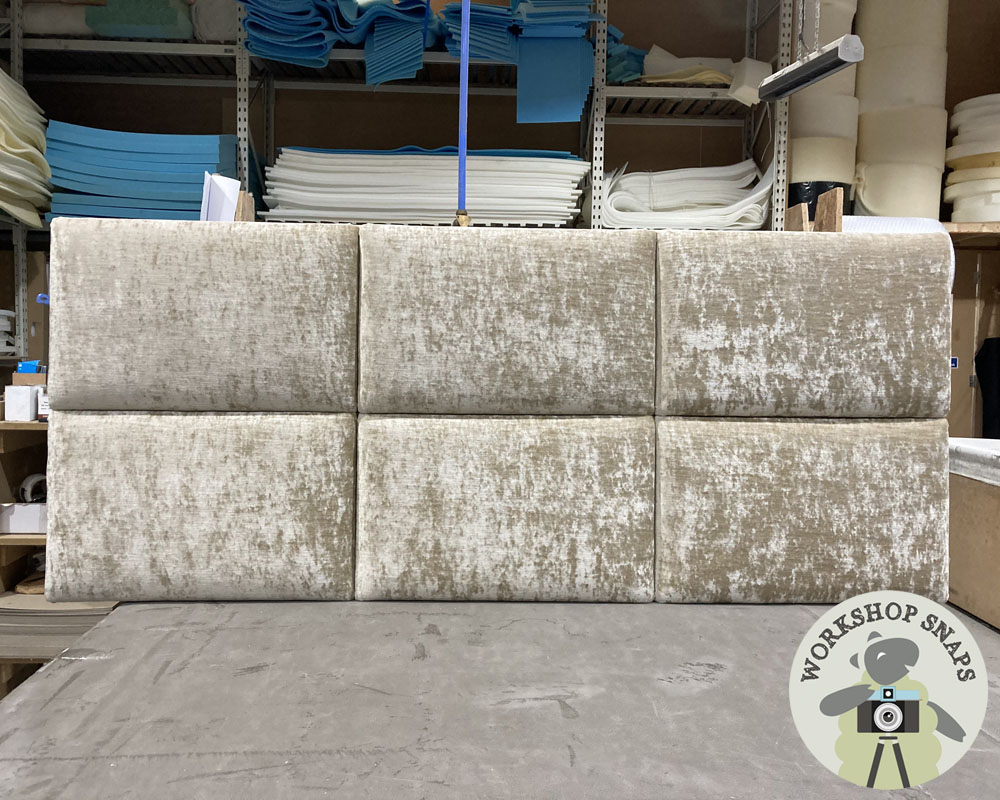 Additional rectangular pads can be added to the height and width of the Skye. To create a bespoke Skye headboard, please call us on 01291 628216.