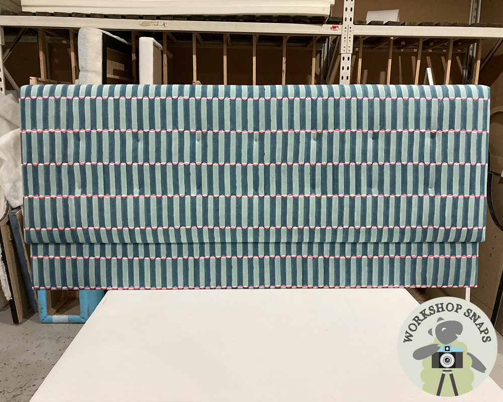 We will carefully pattern match the fabric to make it wide enough, using a full width in the centre of the headboard.