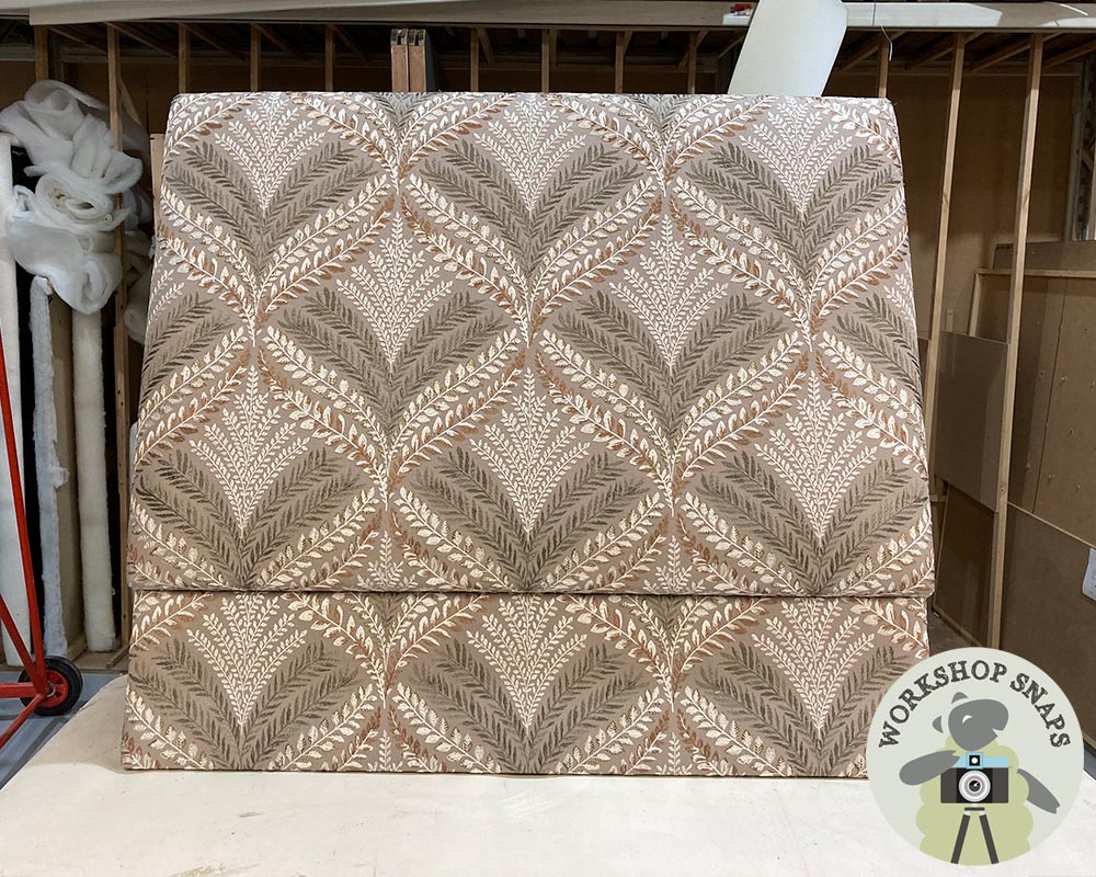 We will carefully pattern match the fabric to make it wide enough, using a full width in the centre of the headboard.