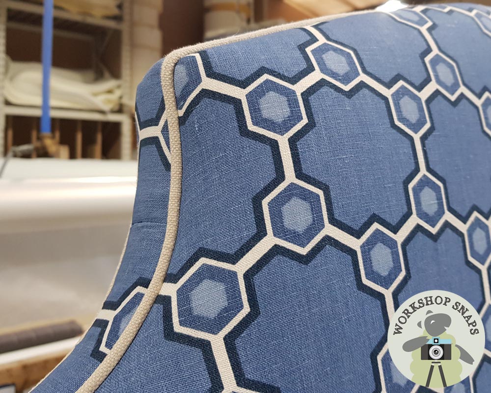 We will carefully pattern match the fabric to make it wide enough, using a full width in the centre of the headboard.